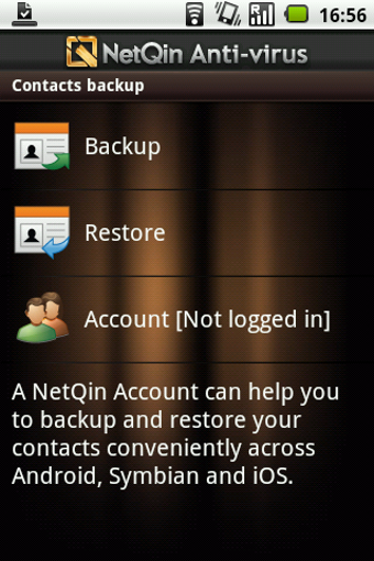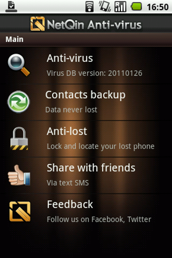 Net zoals reguliere Antivirussoftware scant NetQin Antivirus je telefoon op kwaadwillende bestanden of programma's. Met up-to-date informatie van het web -een internetverbinding is dus nodig- waarschuwt deze compacte speurneus bij gevaarlijke bestanden.